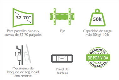 Aprovecha el espacio al máximo y disfruta del magnífico panorama que te ofrece este estilizado soporte de pared de primera calidad, concebido para televisores de pantalla plana o curva de 32 a 70 pulgadas. Su diseño de perfil delgado con fácil sistema de sujeción lo convierte en el accesorio perfecto para sistemas de cine en el hogar. Presenta una estructura metálica resistente y arquitectura abierta que facilita la ventilación. Su innovador mecanismo de agarre con resorte ayuda a sujetar los brazos de montaje en el lugar adecuado para mayor seguridad. Este práctico soporte, compatible con VESA, es muy fácil de instalar de modo ¡que podrás configurarlo y comenzar a disfrutar de tus películas y programas favoritos en sólo minutos!